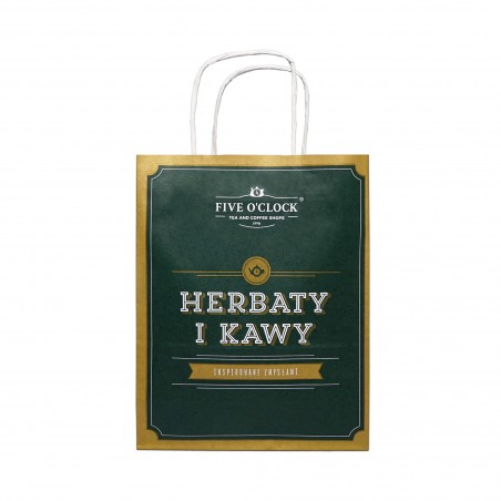Torba Zielona Papierowa Mini Mała torba papierowa, ozdobiona logiem Five o'clock to szybka i wygodna forma opakowania. Idealna do drobny herbaciany bądź kawowy upominek. 1,30 zł Dodaj do koszyka
