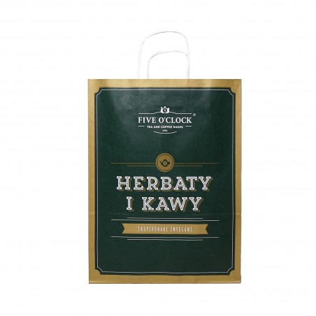 Torba Papierowa Zielona Duża Duża torba papierowa, ozdobiona logiem Five o'clock to szybka i wygodna forma opakowania. Idealna do zapakowania większego herbacianego bądź... 2,20 zł Dodaj do koszyka