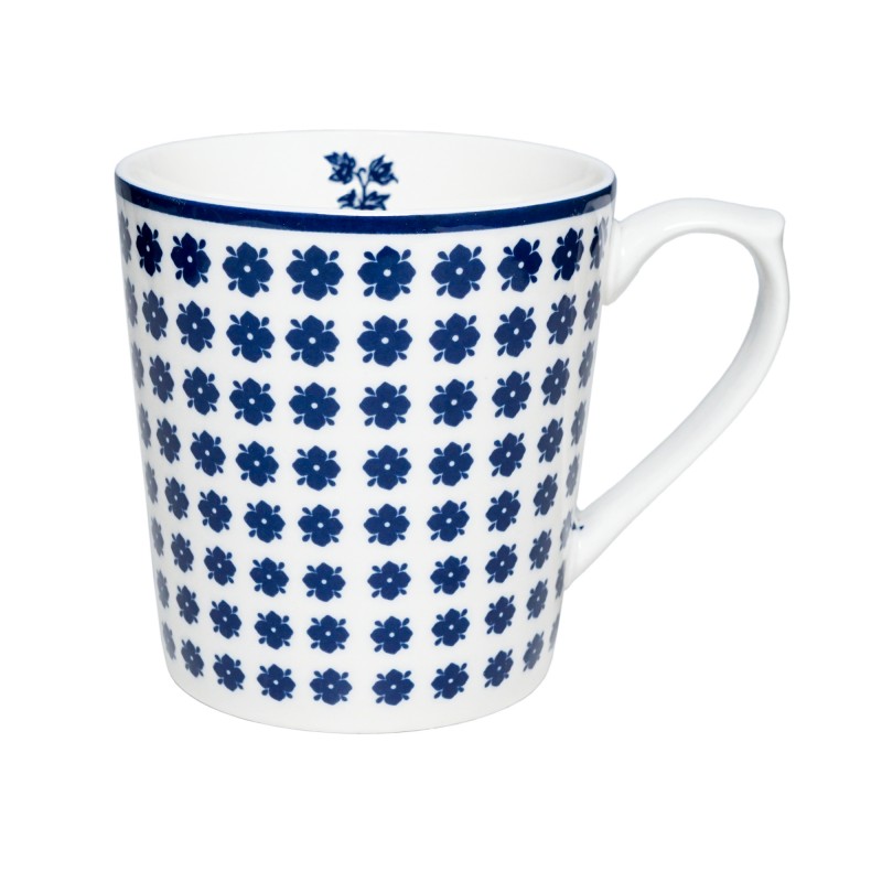 Wykonany z wysokiej jakości porcelany kostnej kubek DAIS z kolekcji Blueprint Laury Ashley. Kubek w białym kolorze ozdobiony niebieskimi kwiatkami.