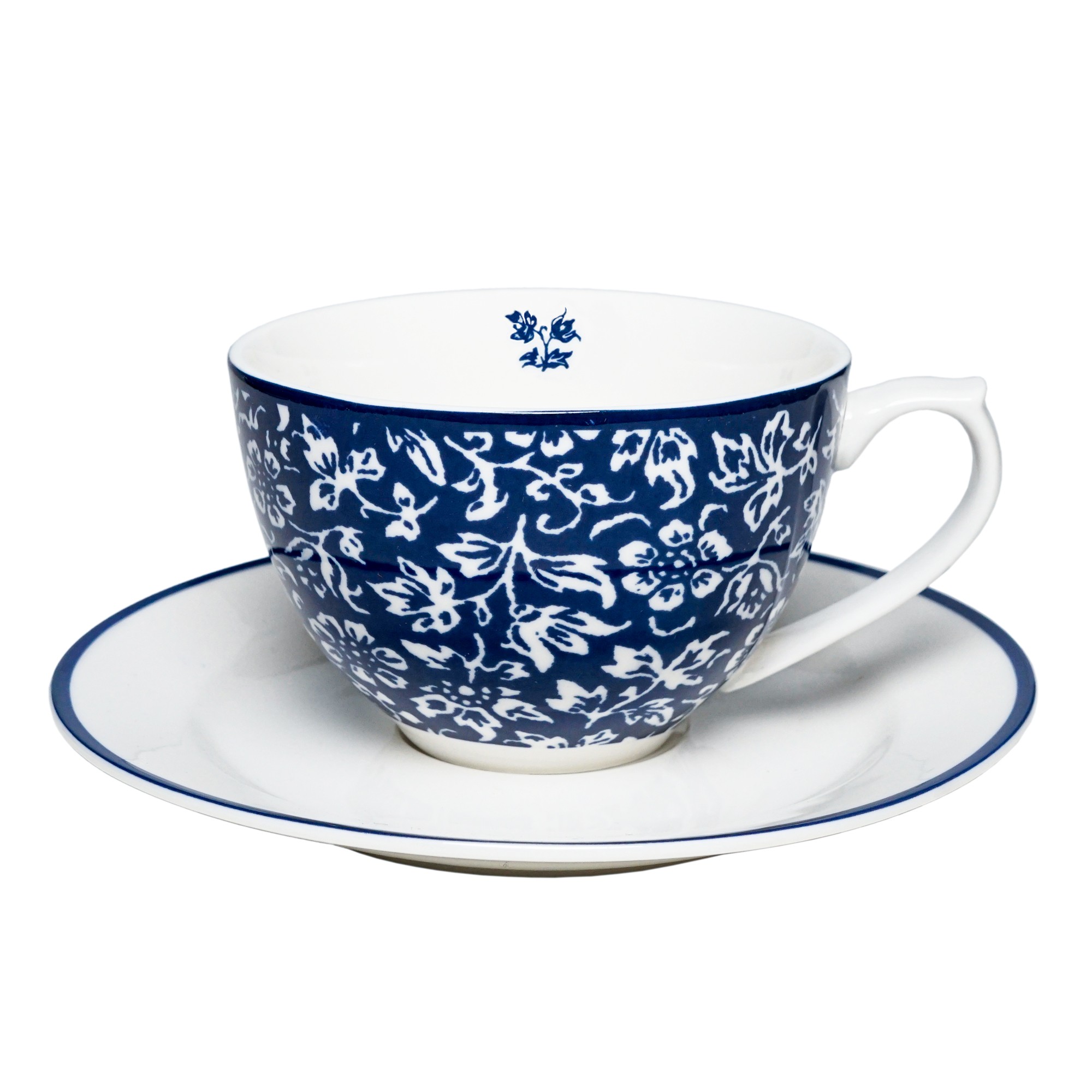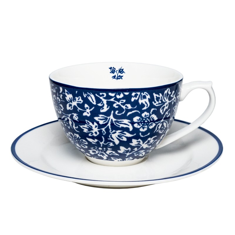 Wykonany z wysokiej jakości porcelany kostnej filiżanka do cappuccino ALLYSUM z kolekcji Blueprint Laury Ashley. Filiżanka w białym kolorze ozdobiona niebieskimi kwiatkami.