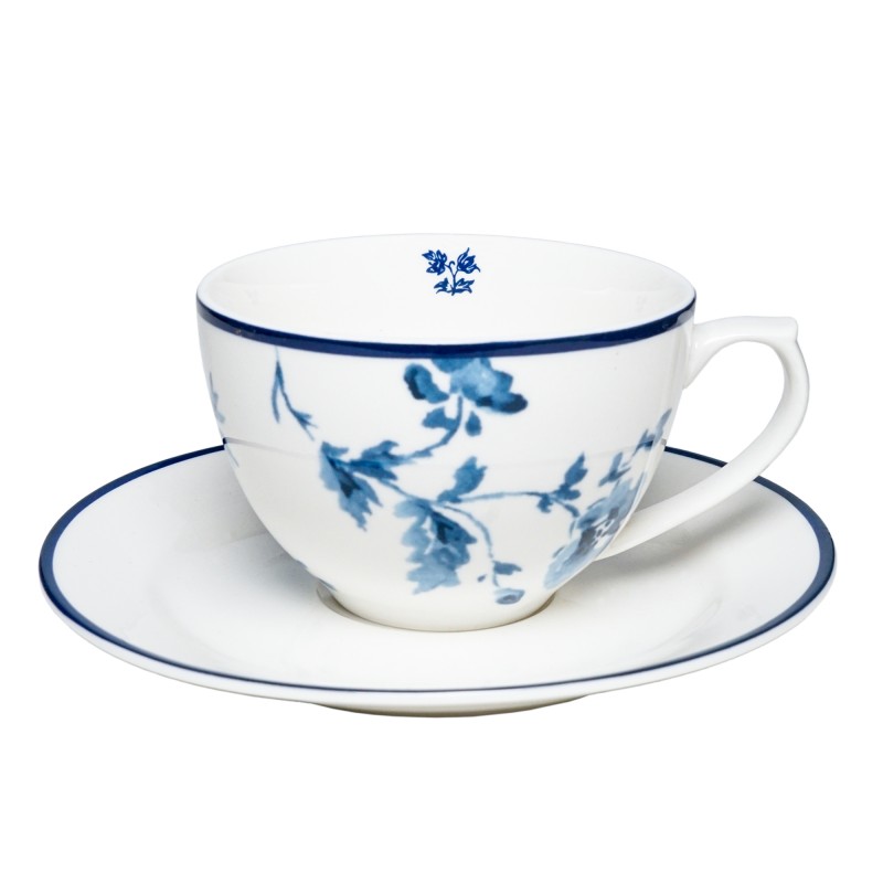Wykonana z wysokiej jakości porcelany kostnej filiżanka do cappuccino Laury Ashley ROSE z kolekcji Blueprint. Urocza w białym kolorze ozdobiona niebieskim, różanym wzorem, doskonała do kuchni lub jadalni praktycznie w każdym stylu.
