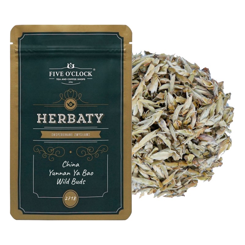 Liście Yunnan Ya Bao to regularne pąki o kremowej, lekko srebrzystej barwie. Pąki są delikatne, młode i pełne naturalnego aromatu, co czyni tę herbatę wyjątkową wśród białych herbat liściastych. Napar jest jasny, klarowny, o subtelnym, świeżym smaku z delikatnymi nutami roślinnymi oraz intensywnie słodką końcówką. Herbata jest intensywnie kwiatowa, z akcentami bzu i konwalii, ale finisz zachwyci lekkością i odświeżeniem. Doskonała do degustacji.