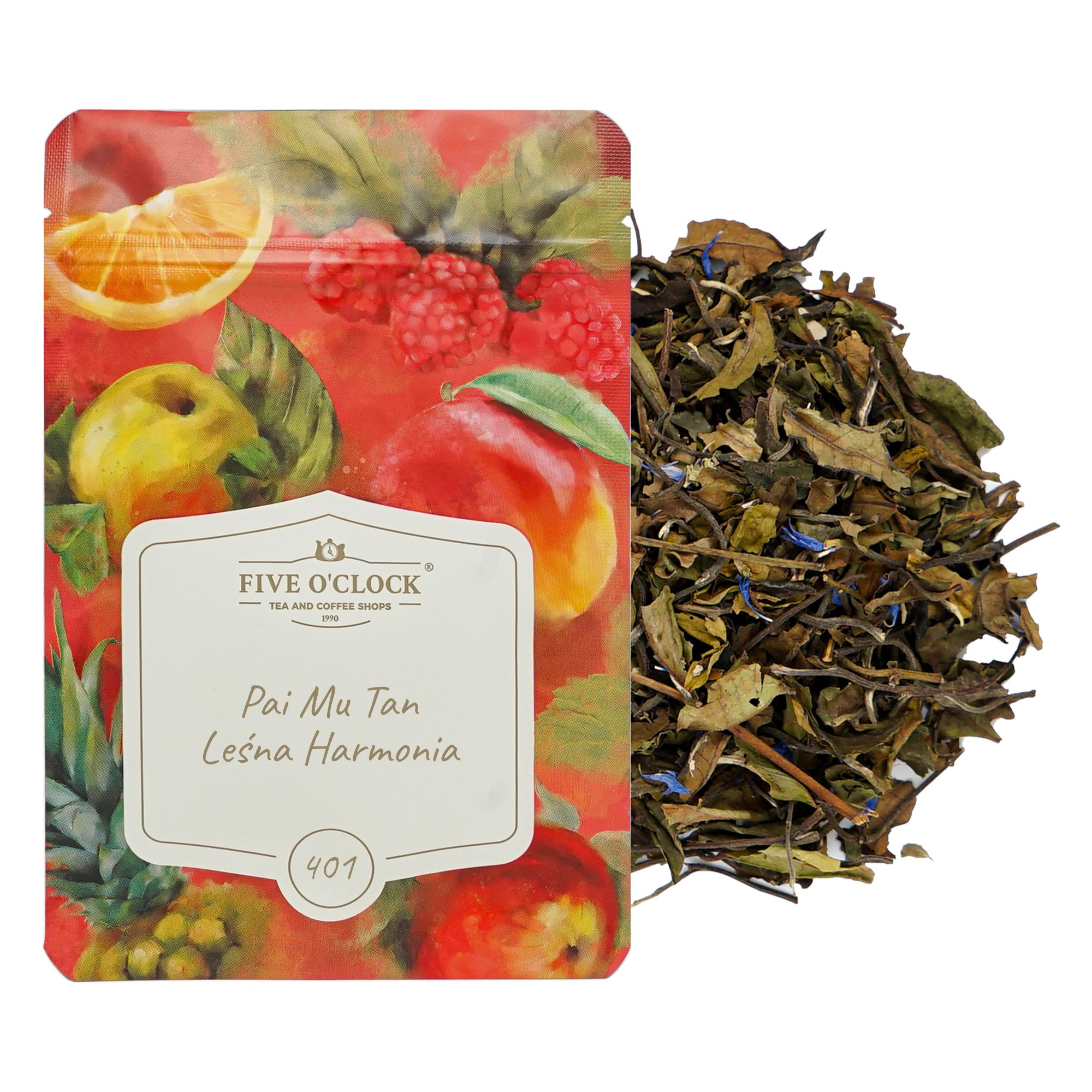 Biała chińska herbata Pai Mu Tan z dodatkiem borówki i czarnej porzeczki. Werbena cytrynowa i listki jeżyn wzbogacają smak charakterystyczną rześkością.