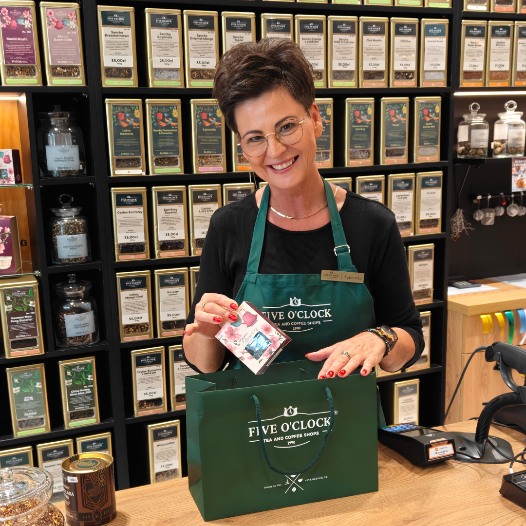 Koncept Atelier Herbaty by Five o'clock to połączenie możliwości zakupu herbaty i kawy na wynos ze sklepami Five o'clock.