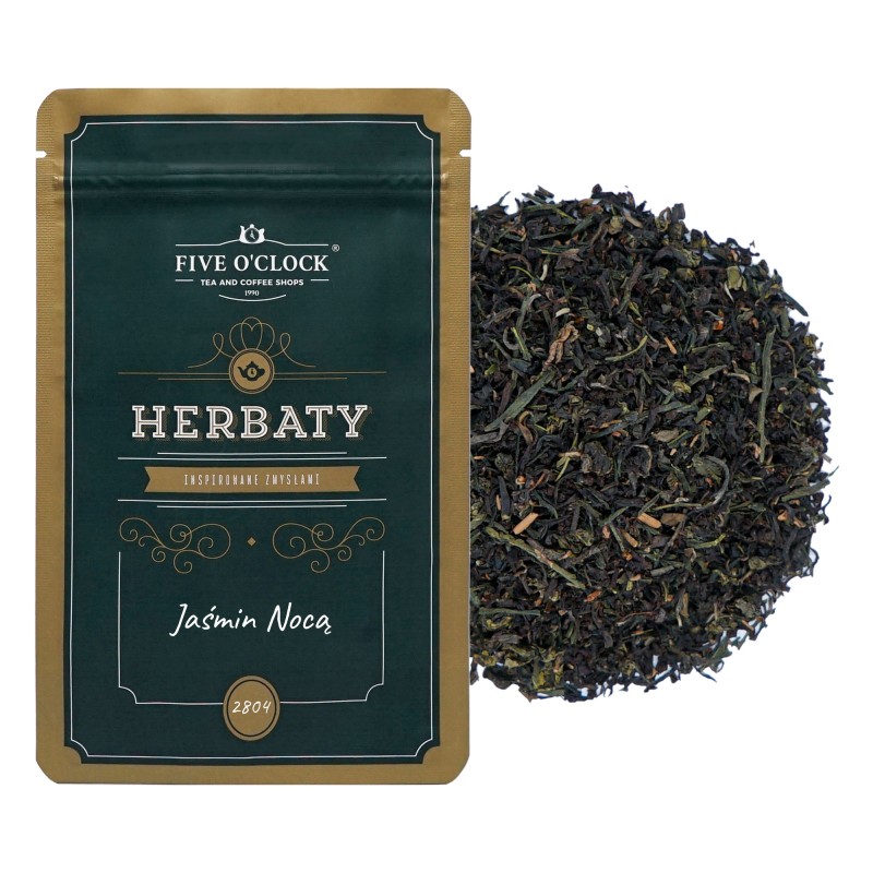 Ciekawe połączenie herbaty czarnej, zielonej, oolong i jaśminowej. To napar o ciepłej, bursztynowej barwie który łączy subtelną goryczkę z kwiatowymi nutami i roślinnym posmakiem. Wyraźnie jaśminowy akcent utrzymuje się na długo po degustacji.