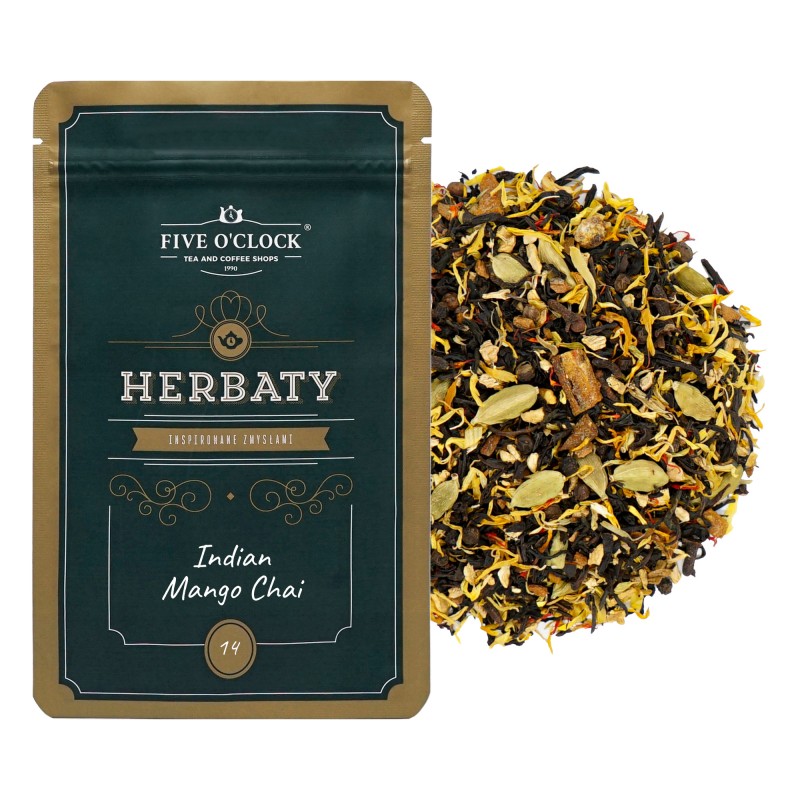 Czarna herbata assamska, wzbogacona owocami mango, kardamonem, cynamonem, płatkami krokosza, płatkami słonecznika, goździkami. Dodatek ziarenek pieprzu oraz cząstek imbiru nadają przyjemnej ostrości. Rozgrzewa oraz wprowadza w dobry nastrój.