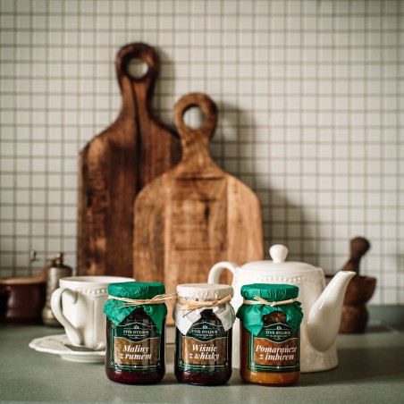 smaczna konfitura, ciekawe połączenie smaków. Najpierw czuć wiśnie, potem czuję się lekki posmak whisky. Zdecydowanie do smaczku, na łyżeczkę, jest bardzo słodka.