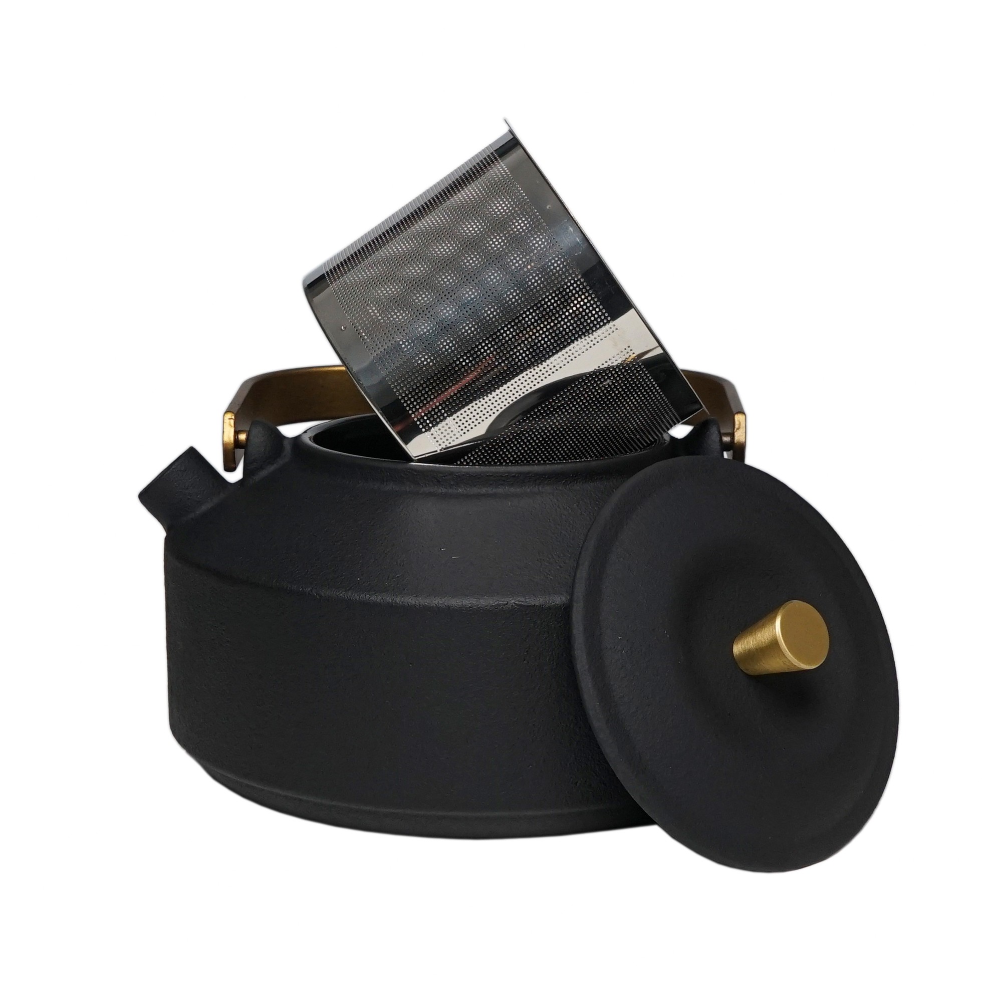 Elegancki i trwały, żeliwny dzbanek Ning. Ponadczasowe połączenie czerni i złota.