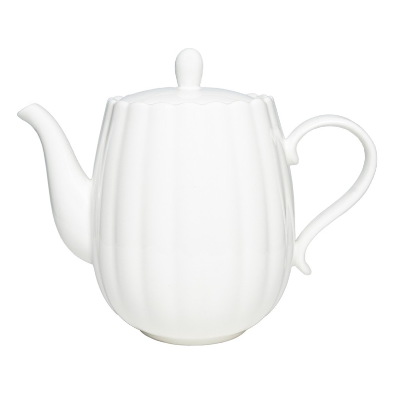 Elegancki dzbanek o pojemności 850 ml wykonany z wysokiej jakości białej porcelany, ozdobiony subtelną, falowaną strukturą, która nadaje mu elegancki i wyrafinowany charakter.