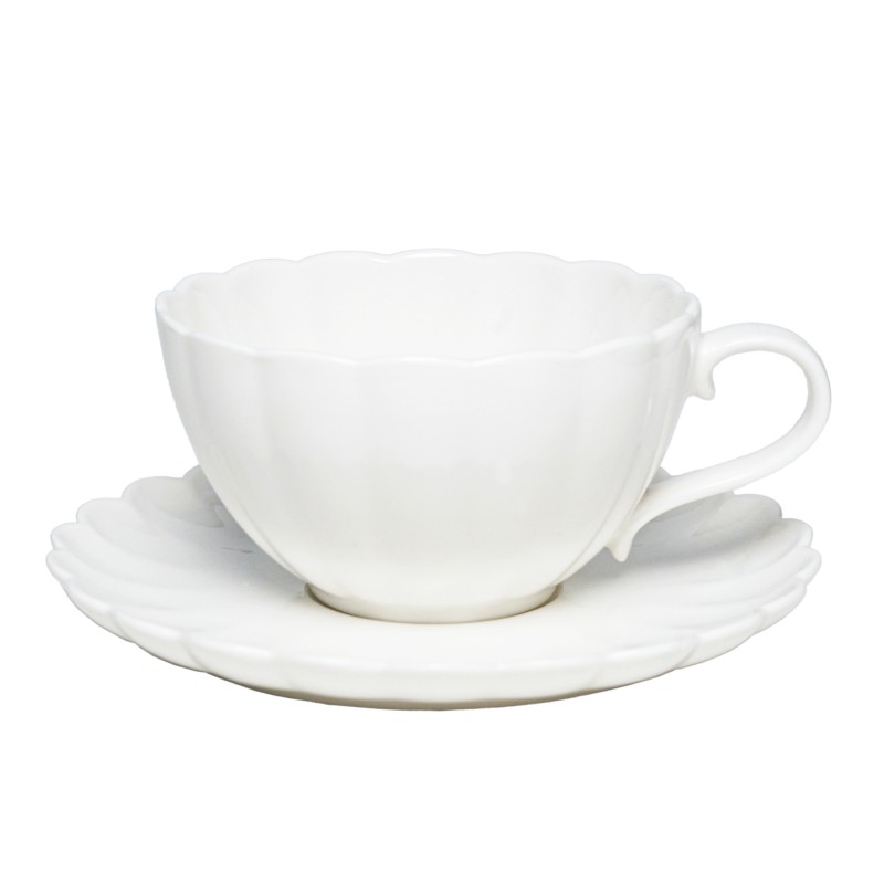 Elegancka filiżanka o pojemności 250 ml wykonana z wysokiej jakości białej porcelany, ozdobiona subtelną, falowaną strukturą, która nadaje jej wyjątkowej lekkości i elegancji.