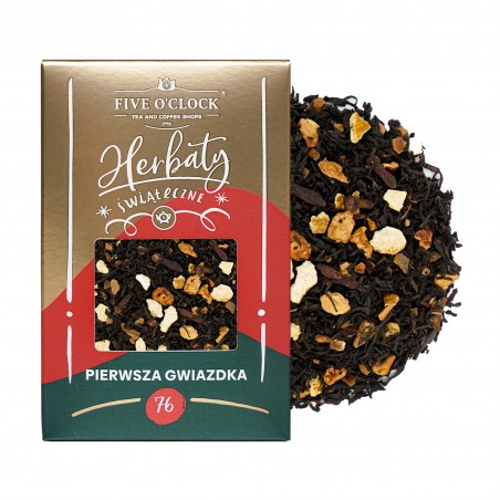 Kompozycja czarnej herbaty z aromatyczną skórką pomarańczy i cząstkami jabłek. Dodatek cynamonu i goździków wprowadza świąteczny akcent i umila oczekiwanie na tę jedyną, wyjątkową gwiazdkę w wigilijny wieczór.