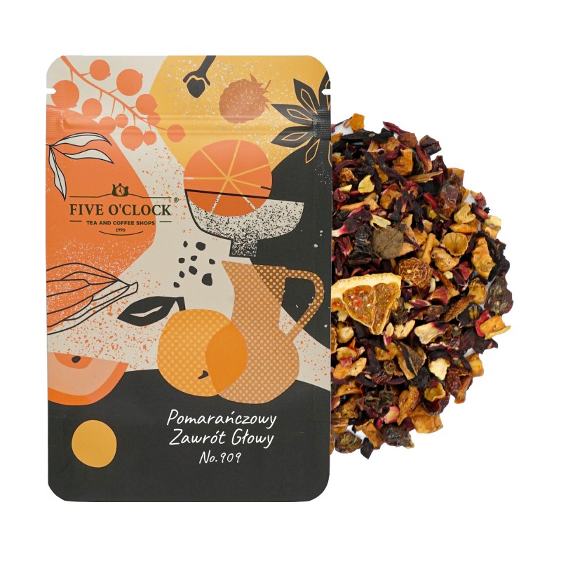Wyśmienita kompozycja jabłek, suszonej dzikiej róży oraz płatków krokosza. Dodatek skórki pomarańczy wzbogaca smak i nadaje mieszance ciekawego bukietu aromatycznego. Całość uzupełniają duże kawałki pomarańczy, które podkreślają jej owocowy akcent. Napar za sprawą obecności hibiskusa zaskakuje piękną, intensywną barwą. Jest to idealna propozycja dla wielbicieli cytrusów. Wspaniale smakuje zarówno w wersji na ciepło jak i na zimno. Całodzienna.