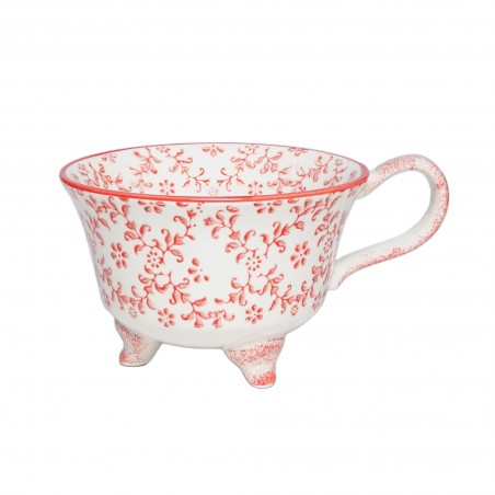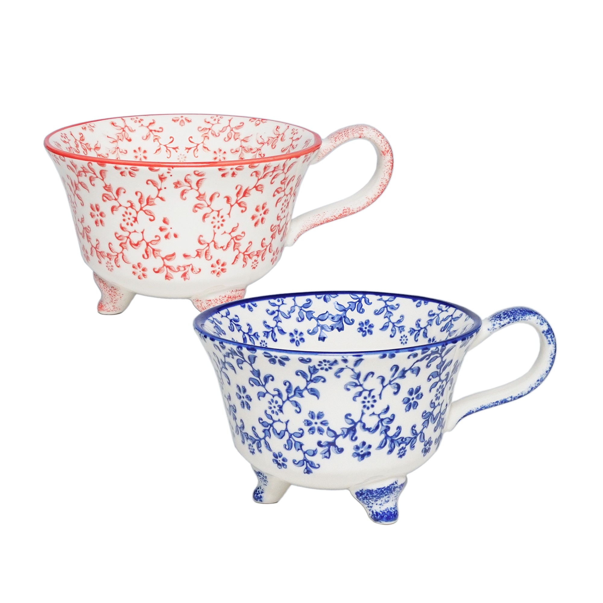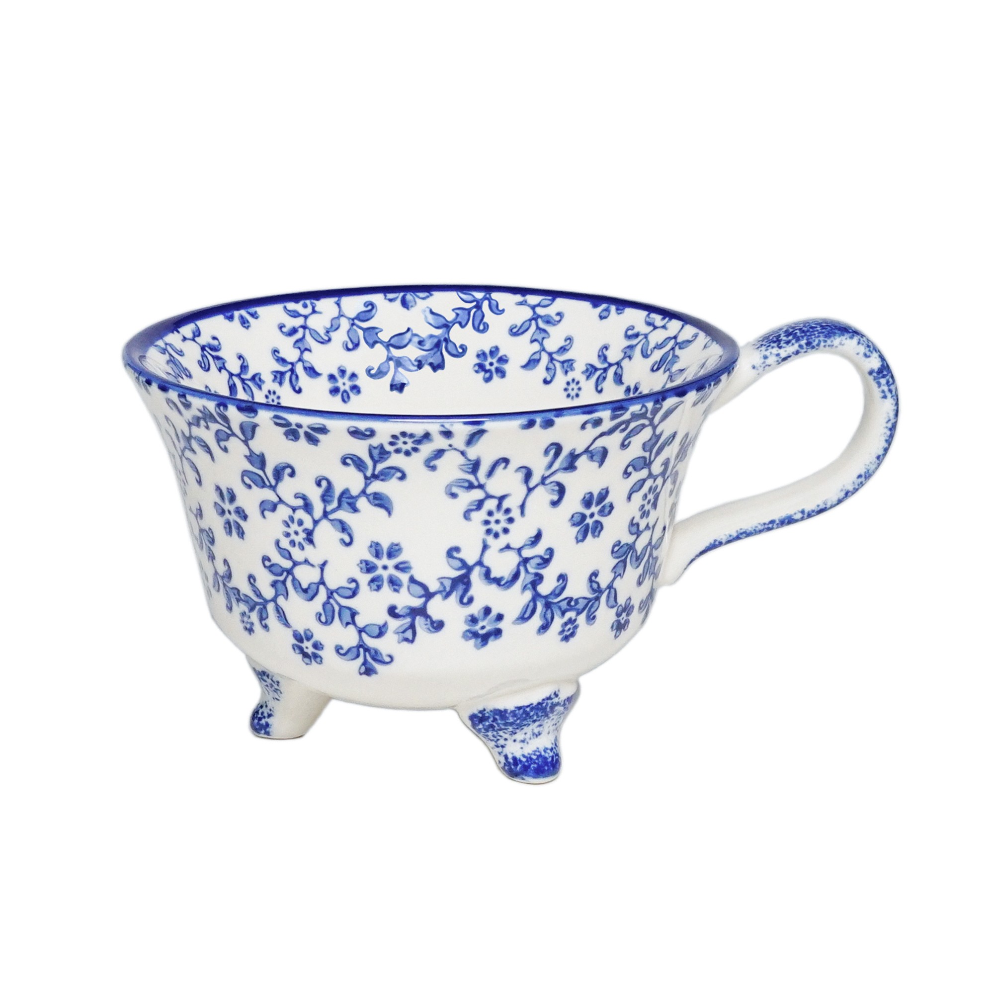 Uroczy kamionkowy kubek w unikalnym kształcie , z delikatnym kwiatowym wzorem. Dostępny w dwóch wersjach kolorystycznych.