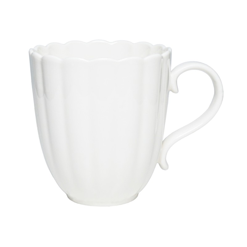 Elegancki kubek o pojemności 350 ml wykonany z białej porcelany o subtelnej, falowanej strukturze. Łączy w sobie klasykę i nowoczesny design, doskonale sprawdzając się zarówno na co dzień, jak i podczas wyjątkowych chwil przy ulubionej herbacie.