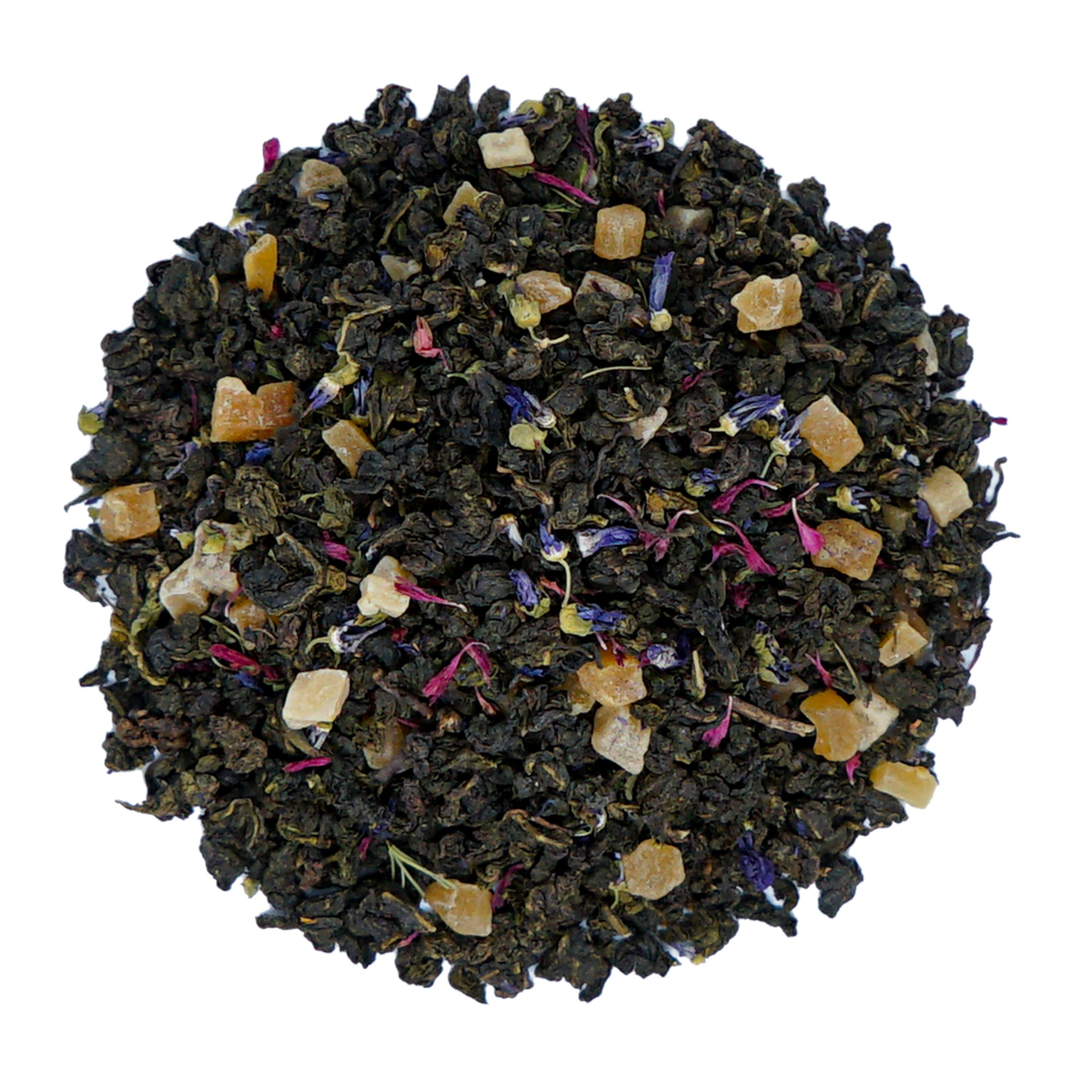 Oolong o niskim stopniu utlenienia z dodatkiem słodkich cząstek mango, orzeźwiającej mięty i cytrusowej bergamotki. Uroku i ciekawego smaku dodają płatki malwy i bławatka. Rozsmakuj się w niej w nadchodzące ciepłe dni.
