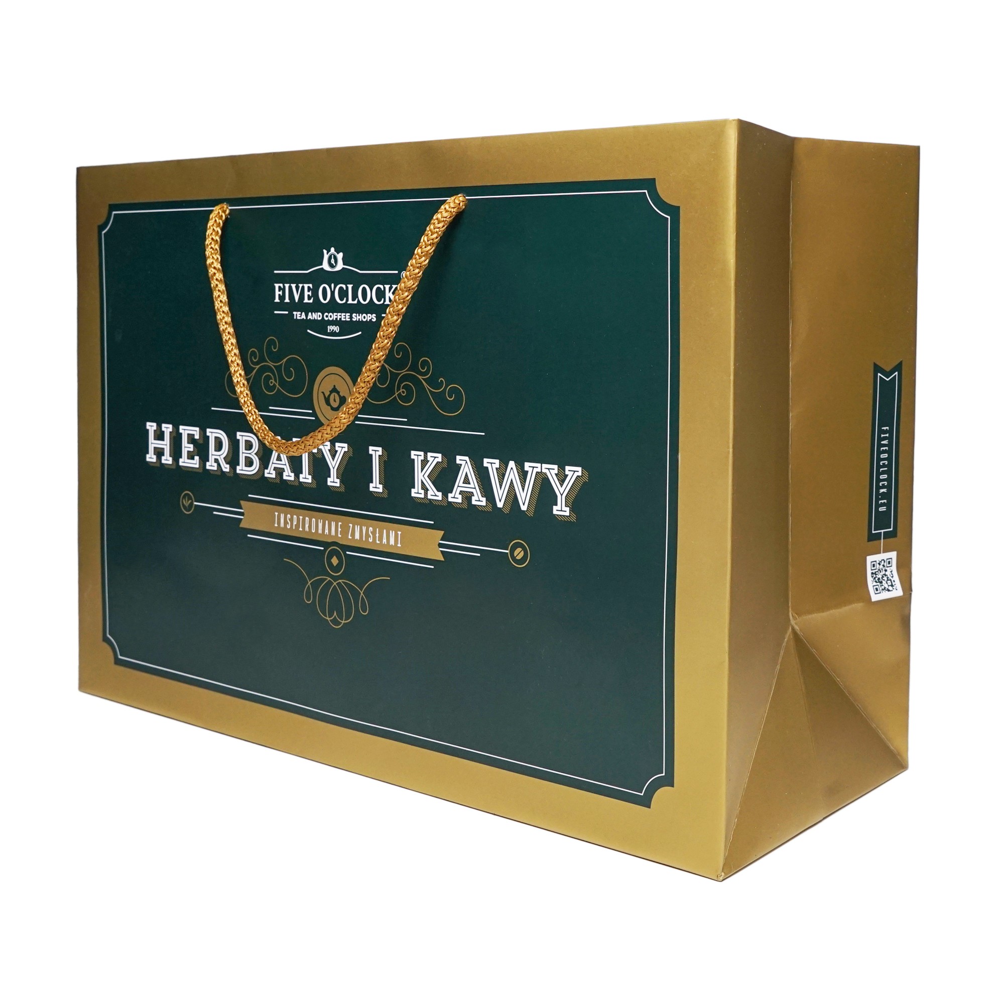 Torba prezentowa z logo Five o'clock jest wytrzymała i poręczna. Elegancka i prosta forma opakowania na każdą okazję.