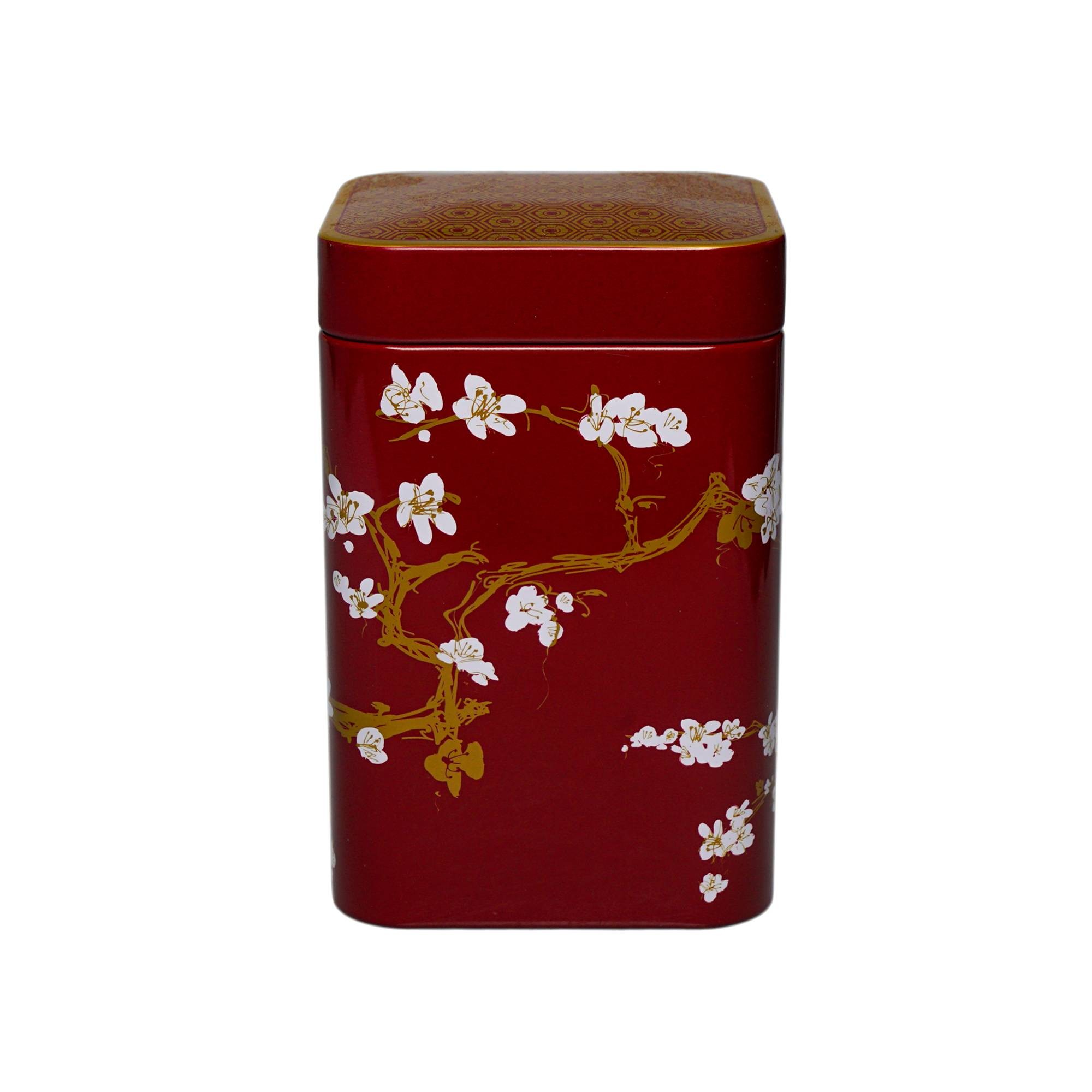 Stylowa puszka na herbatę z japońską grafiką kwiatów wiśni.