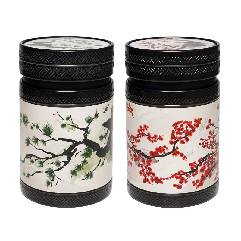 Piękna puszka z roślinnym motywem przywołującym na myśl Daleki Wschód. Praktyczne, podwójne wieczko gwarantuje prawidłowe przechowywanie herbaty.
