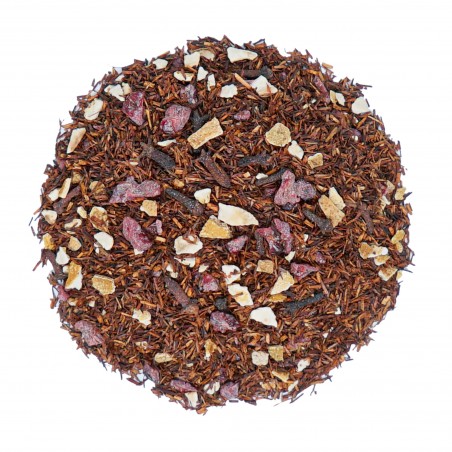 Zioło rooibos połączone ze skórką pomarańczy, korzennymi goździkami i owocem żurawiny. Napar charakterystycznie słodki z lekką rześkością, przełamany intensywnie korzennym posmakiem.