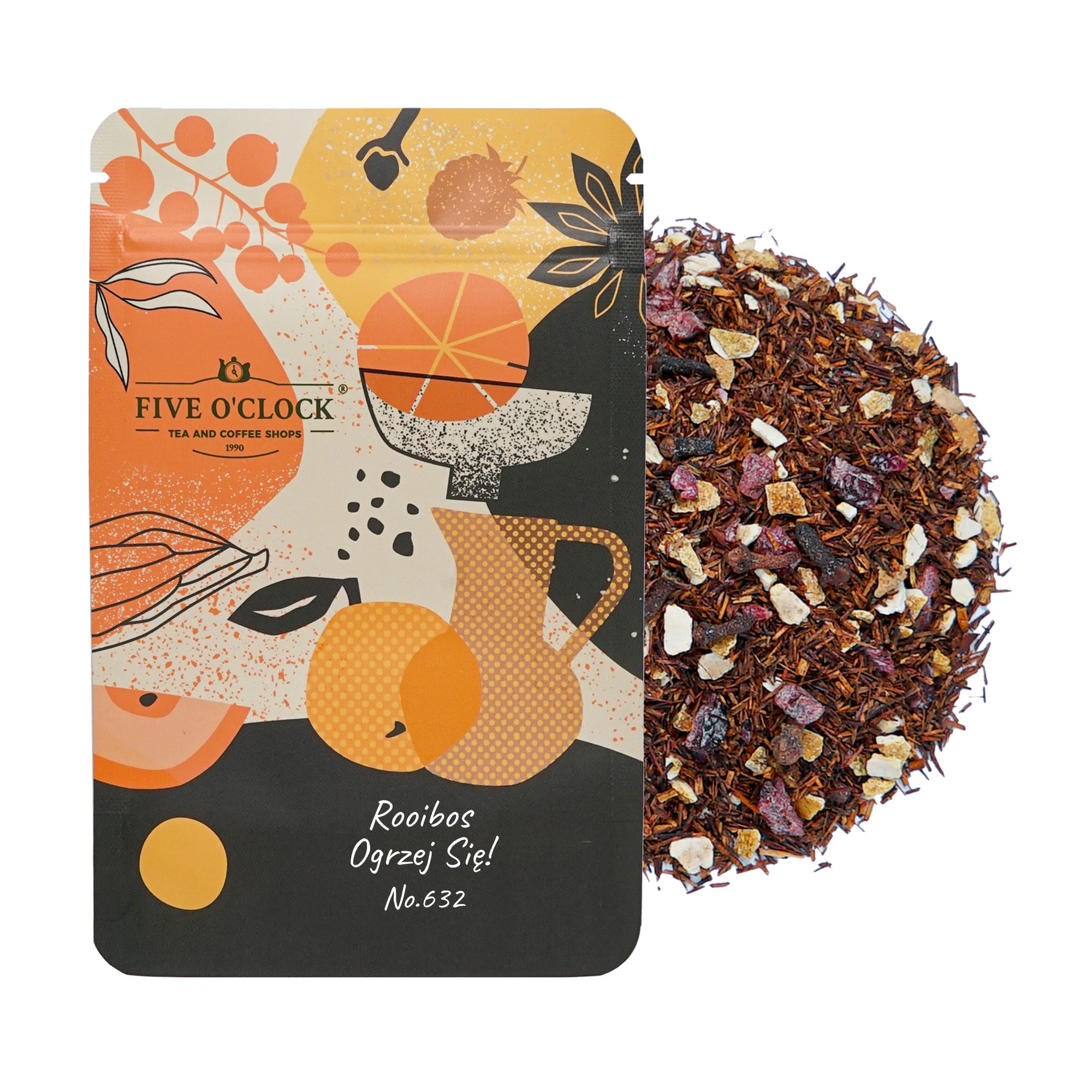 Mieszanka, która ogrzeje w chłodne dni! Zioło rooibos połączone ze skórką pomarańczy i goździkami. Dodatek żurawiny nadaje lekko owocowy smak całej kompozycji. Napar charakterystycznie słodki, delikatnie przełamany rześkością. Dobrze wyczuwalny dodatek goździków nadaje lekkiej pikantności.
