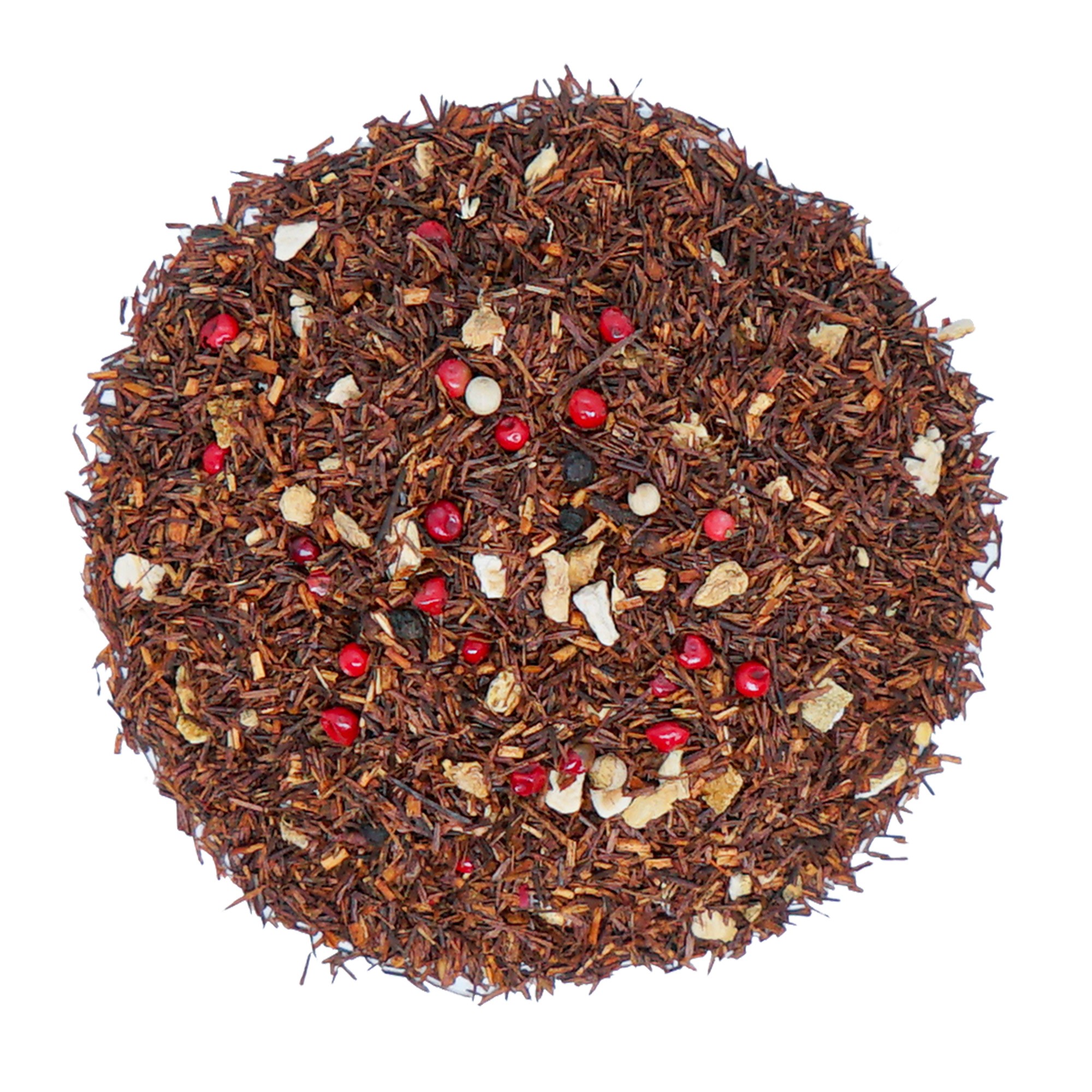 Herbata rooibos (72,75%), imbir (10%), strąk kardamonu (4%), skórka pomarańczy (3%), aromat ciasteczek maślanych (2,5%), różowy pieprz (2%), biały pieprz (2%), biały pieprz (1,5%), goździki (1,5%), aromat karmelu (0,75%), aromat chai (0,75%), aromat egzotyczny (0,25%).