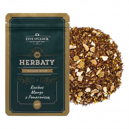 Znakomite połączenie zioła rooibos ze skórką pomarańczy, kandyzowanymi owocami mango oraz płatkami słonecznika. Słodka i rześka jednocześnie.