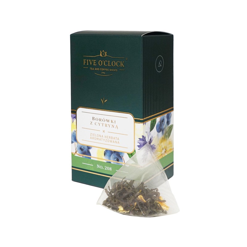 Chińska zielona herbata typu Mao Feng. Ciekawe połączenie borówek z cytryną przyozdobione błękitnymi płatkami chabrów. Idealna na rozpoczęcie dnia.