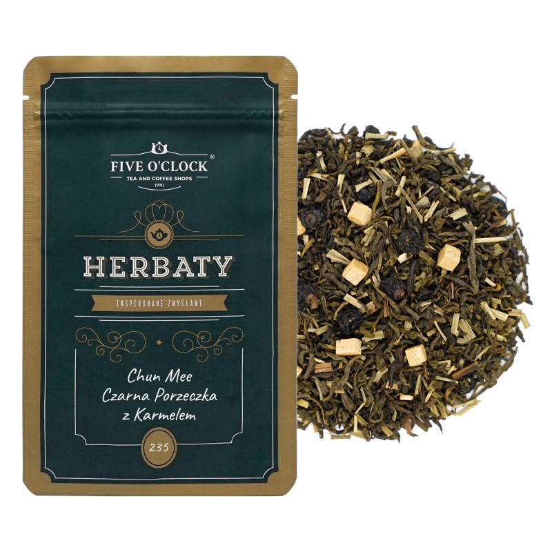Chińska zielona herbata typu Chun Mee z dodatkiem aromatycznej trawy cytrynowej, słodkich cząstek karmelu i porzeczki. Wspaniała gra smaków idealnie wpisuje się w zimową aurę.