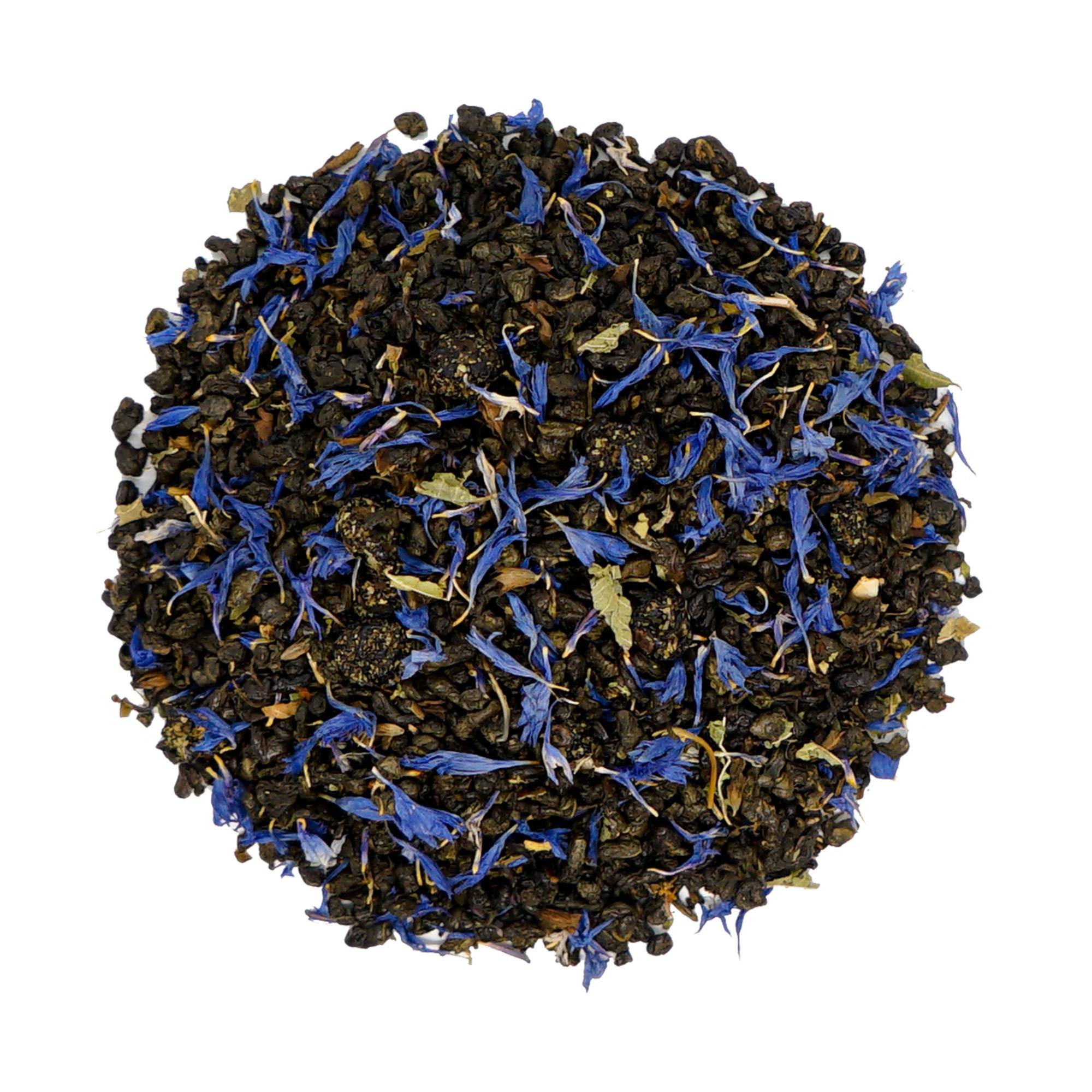 Zielona herbata typu gunpowder z dodatkiem werbeny cytrynowej, czarnej porzeczki i płatków bławatka. Przyjemnie świeża i owocowa kompozycja, z wyrazistym posmakiem. Listki sformowane w kulki pozwalają na wielokrotność parzenia.