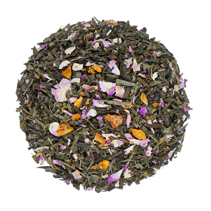 Chińska zielona herbata typu Bancha z dodatkiem słodkich cząstek brzoskwini i aromatycznych płatków róży. Idealne połączenie owocowości z kwiatowym finiszem.