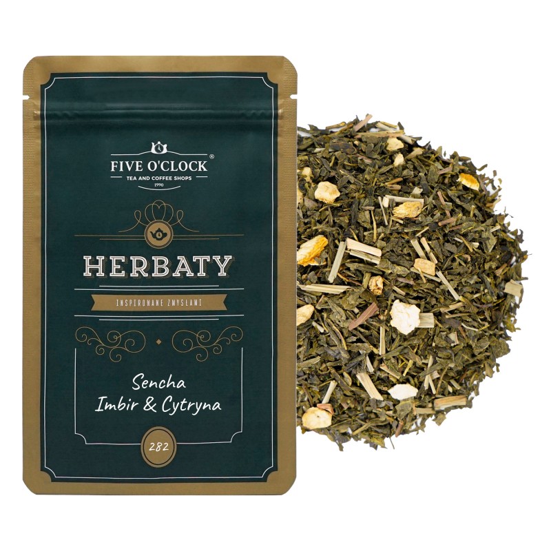 Ciekawe połączenie chińskiej, zielonej herbaty ze zdrowotnym działaniem imbiru, orzeźwiającą trawą cytrynową i skórką cytryny. Całość wzbogacona cytrusowym aromatem. Kompozycja, którą z powodzeniem można degustować zarówno na ciepło jak i w wersji schłodzonej.Dobrze gasi pragnienie i orzeźwia.