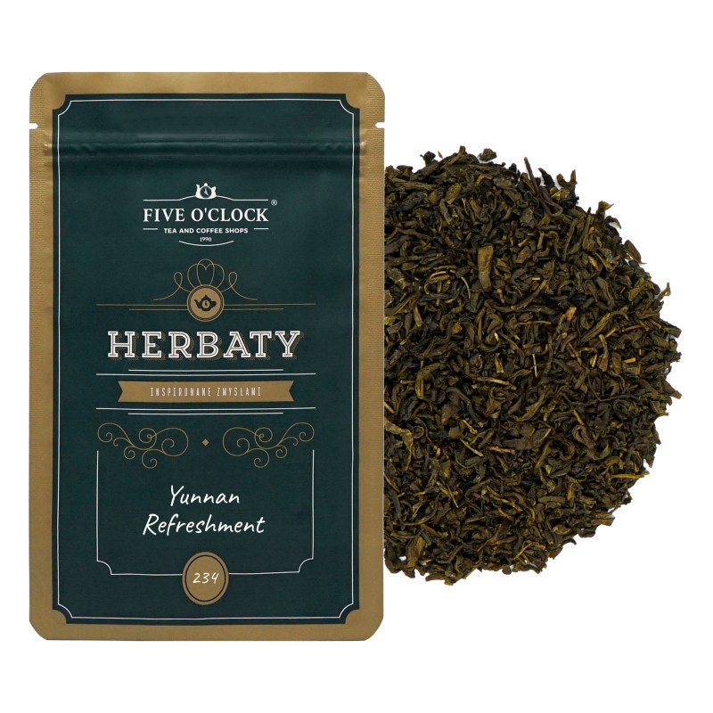 Kompozycja chińskiej zielonej herbaty Yunnan z trzema orzeźwiającymi cytrusowymi aromatami. Niepowtarzalny napar o świeżym smaku i zapachu z lekką nutką goryczki. Dobrze smakuje również z kostkami lodu.