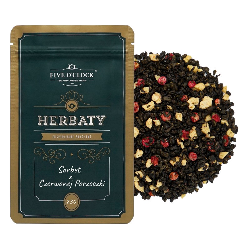 Zielona herbata typu gunpowder z dodatkiem owoców czerwonej porzeczki i sorbetu cytrynowego. Kwaskowa i orzeźwiająca kompozycja, która dobrze smakuje także w wersji schłodzonej.