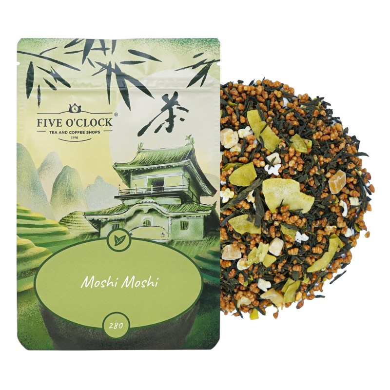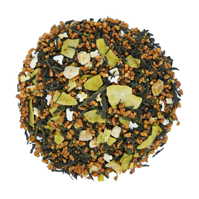 Zielona kompozycja rodem z Japonii. Listki zielonej herbaty typu bancha w połączeniu z prażonym ryżem i kukurydzą. Osłodzona kandyzowanymi kawałkami ananasa, cząstkami kokosa i nutą mango.