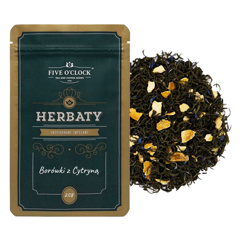 Chińska zielona herbata typu Mao Feng. Ciekawe połączenie borówek z cytryną przyozdobione błękitnymi płatkami chabrów. Idealna na rozpoczęcie dnia.